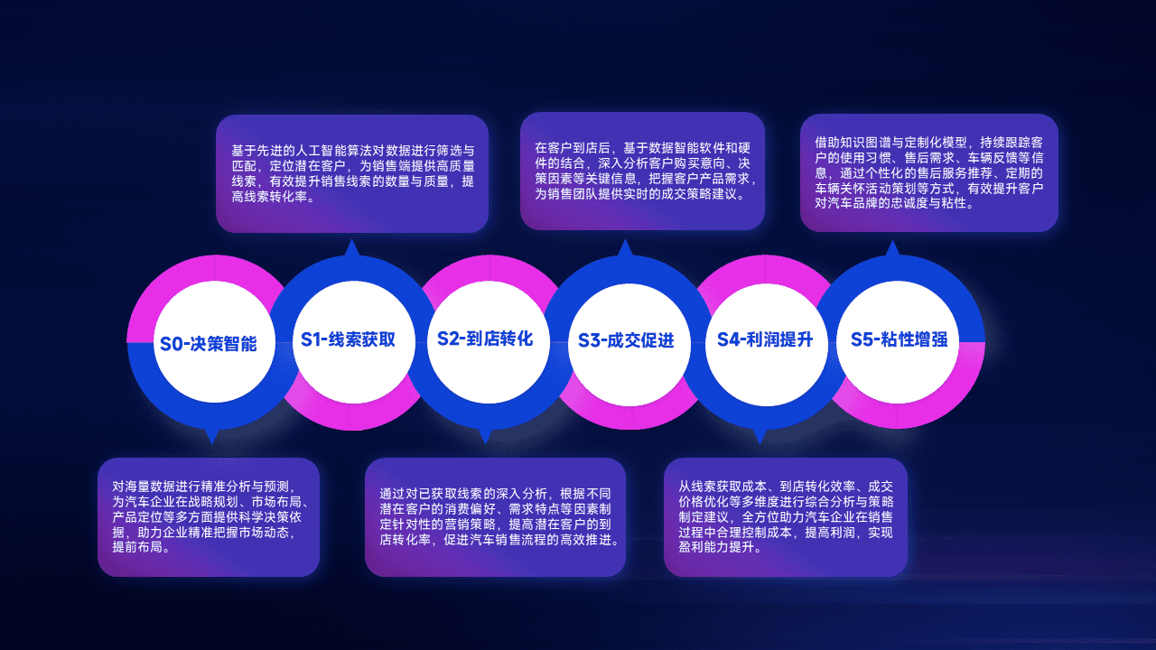 通过拓宽潜在客户来源、、、、优化线索分配并提高到店转化率,,,以增强销售效率。。同时,,,利用线索数据不断优化分析模型,,,,有效提升转化率,,扩大营销影响力。。。